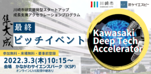 ※Kawasaki Deep Tech Acceleratorは、川崎市が主催し、(株)ケイエスピーが運営協力するものです。