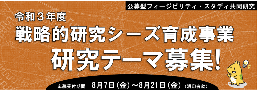 地方独立行政法人神奈川県立産業技術総合研究所ではこの度、「令和3年度戦略的研究シーズ育成事業」の研究テーマを以下の通り募集することとなりましたので周知致します。