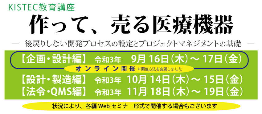 【KISTEC教育講座】作って、売る医療機器~後戻りしない開発プロセスの設定とプロジェクトマネジメントの基礎~★9/16-17オンライン開催★